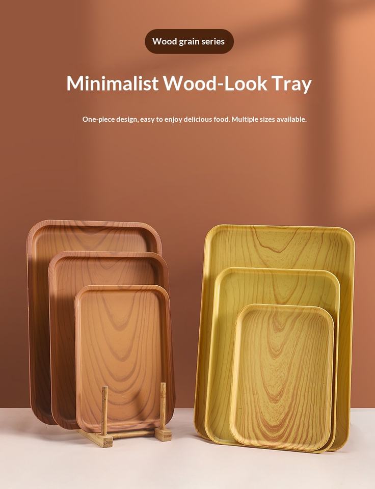 Bandeja Rectangular Grande de Grado Comercial con Diseño de Madera, Bandeja de PP de Grado Alimenticio para Servir Postres en Cafeterías y Té de la Tarde