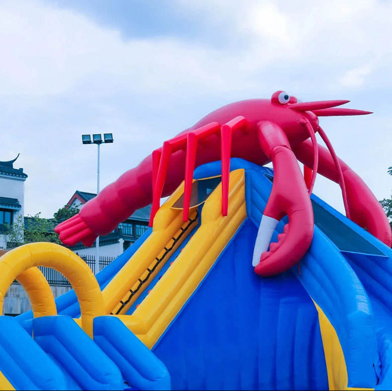 Tobogán de agua inflable de PVC de grado comercial Característica de la piscina de tierra interior al aire libre Característica de agua elegante para parques recreativos