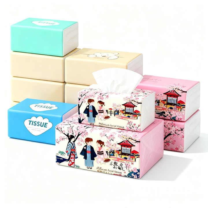 Caja de pañuelos de papel de calidad comercial, suaves, higiénicos y desechables para uso diario y profesional.