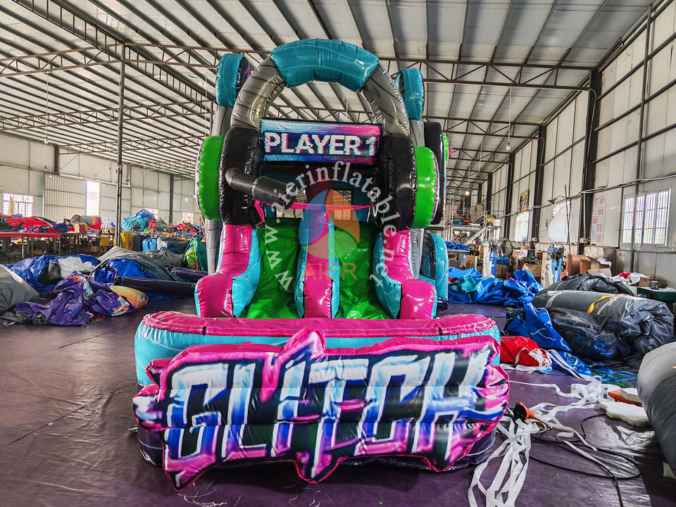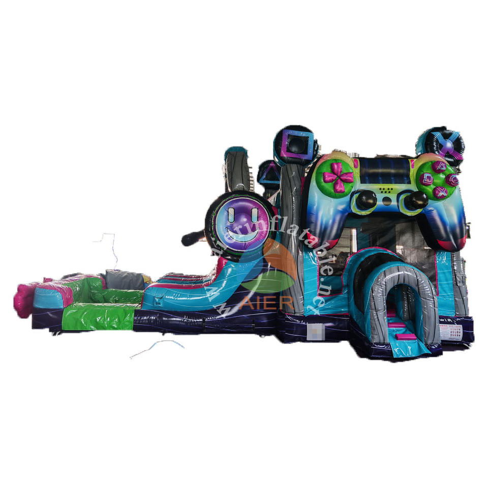 Castillo Inflable Comercial con Temática de Videojuegos, con Tobogán y Pista de Obstáculos Inflable para Alquiler en Fiestas Infantiles