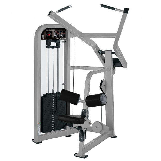 Máquina de entrenamiento comercial para gimnasio, con placa de acero ajustable, brazos fijos para pull-down, para pecho y espalda, con pin de seguridad y selección de carga.