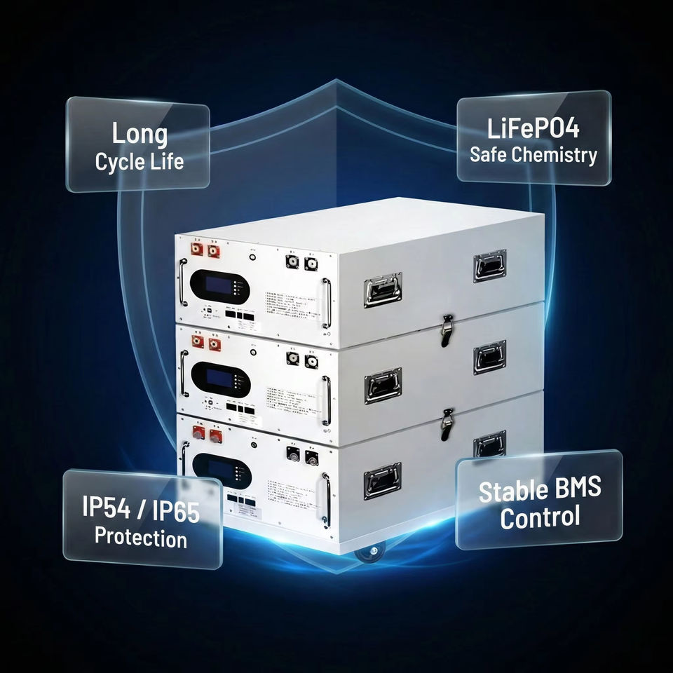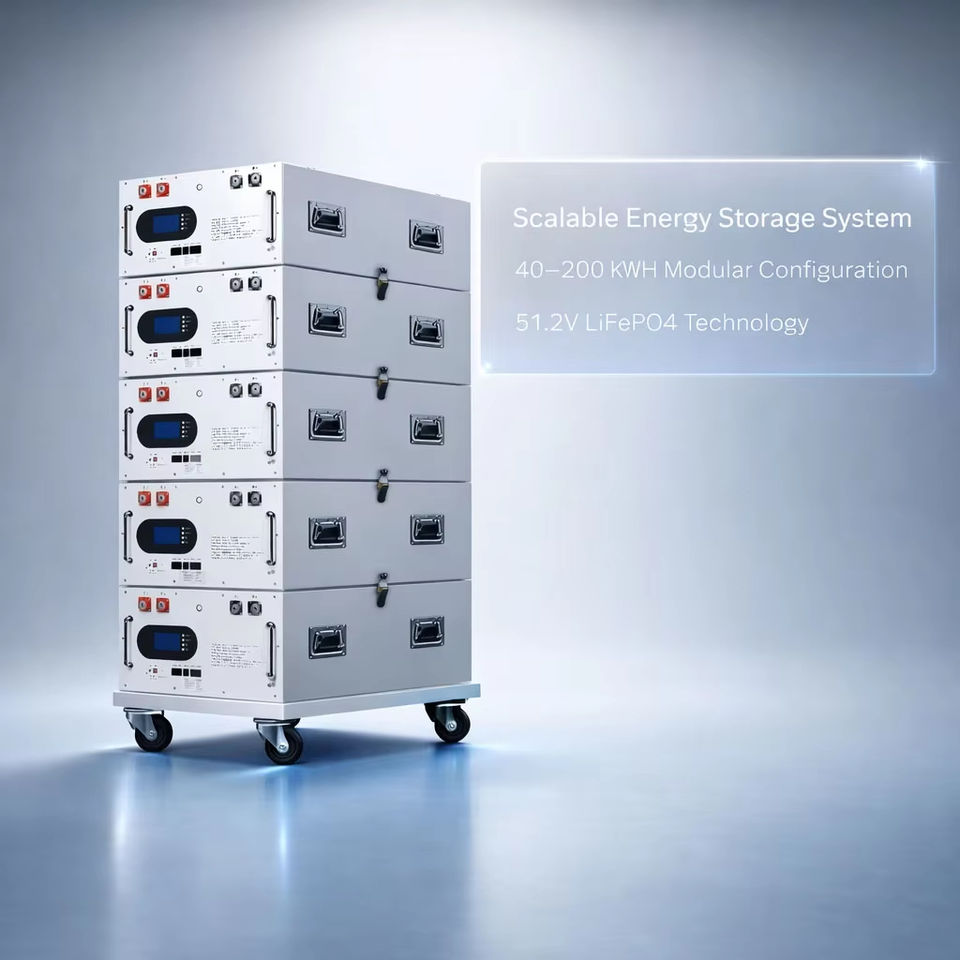 Sistema de Almacenamiento de Energía Híbrido Comercial Apilable IP55, 51.2V LiFePO4, Montaje en Pared, 40kWh-200kWh, Conexión a Red y Fuera de Red, Respaldo Solar