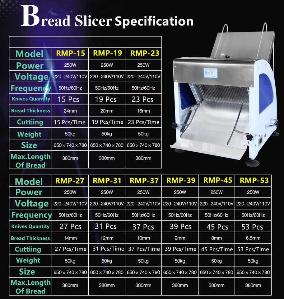 Cortador de corte de pan eléctrico Industrial comercial, máquina cortadora de pan tostado ajustable, cuchillas, rebanadora de pan sándwich