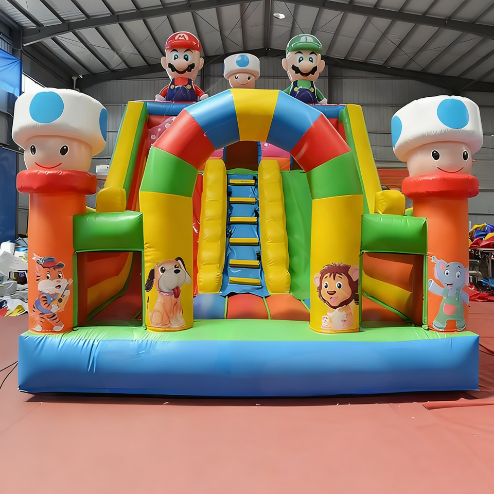 Castillo Inflable Comercial de Mario con Tobogán para Niños, Casa de Brinco Inflable para Alquiler en Fiestas