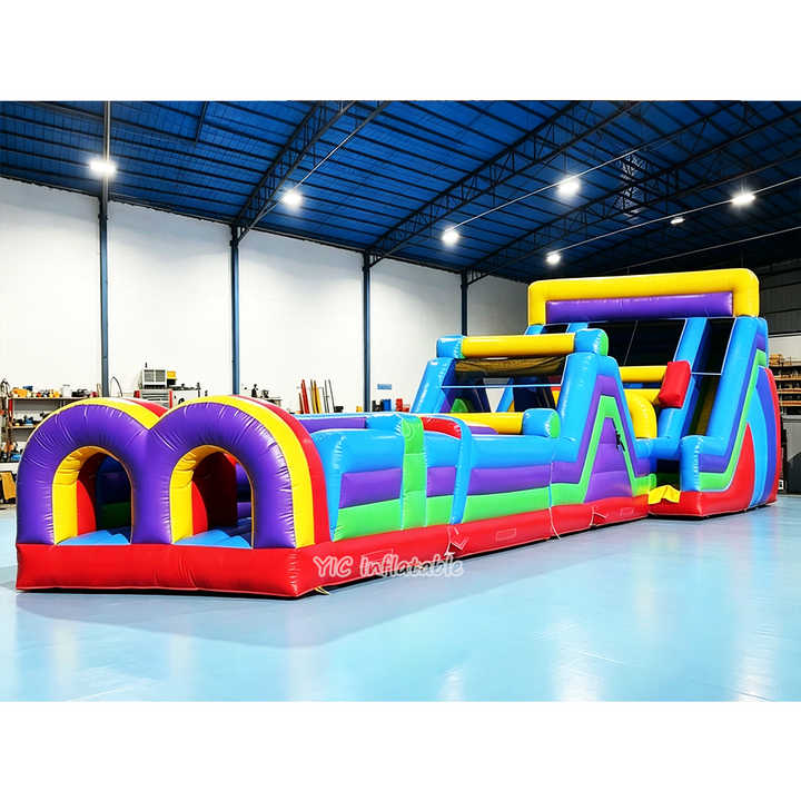 Circuito de Obstáculos Inflable Comercial para Exteriores, Circuito de Obstáculos Gigante para Niños, Casa de Brinco con Tobogán