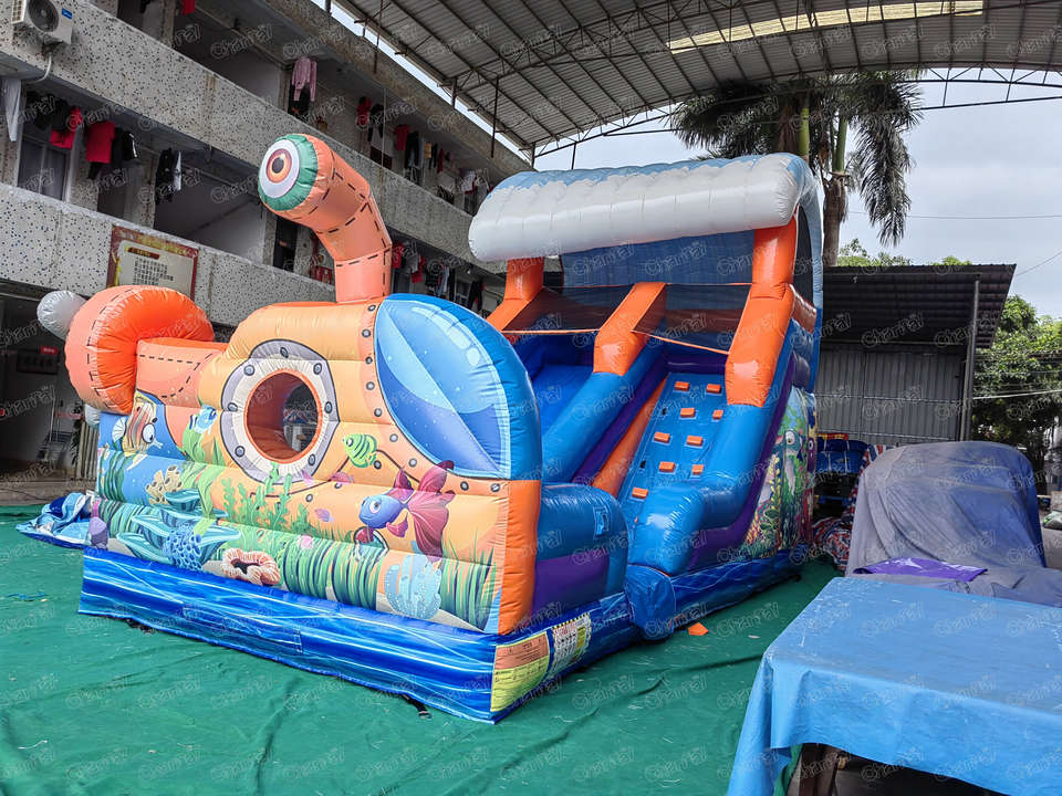 Tobogán inflable comercial para el océano, submarino turístico, Tobogán seco, casa hinchable, tobogán inflable combinado con piscina