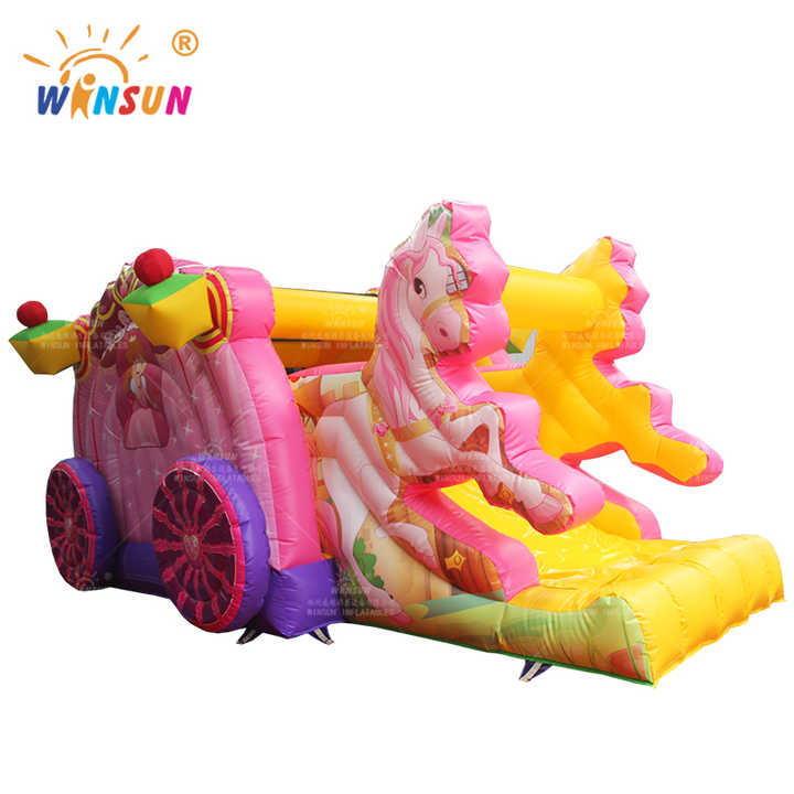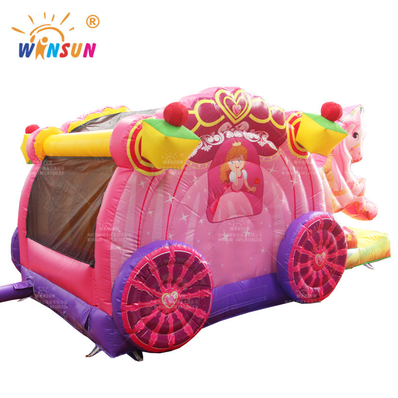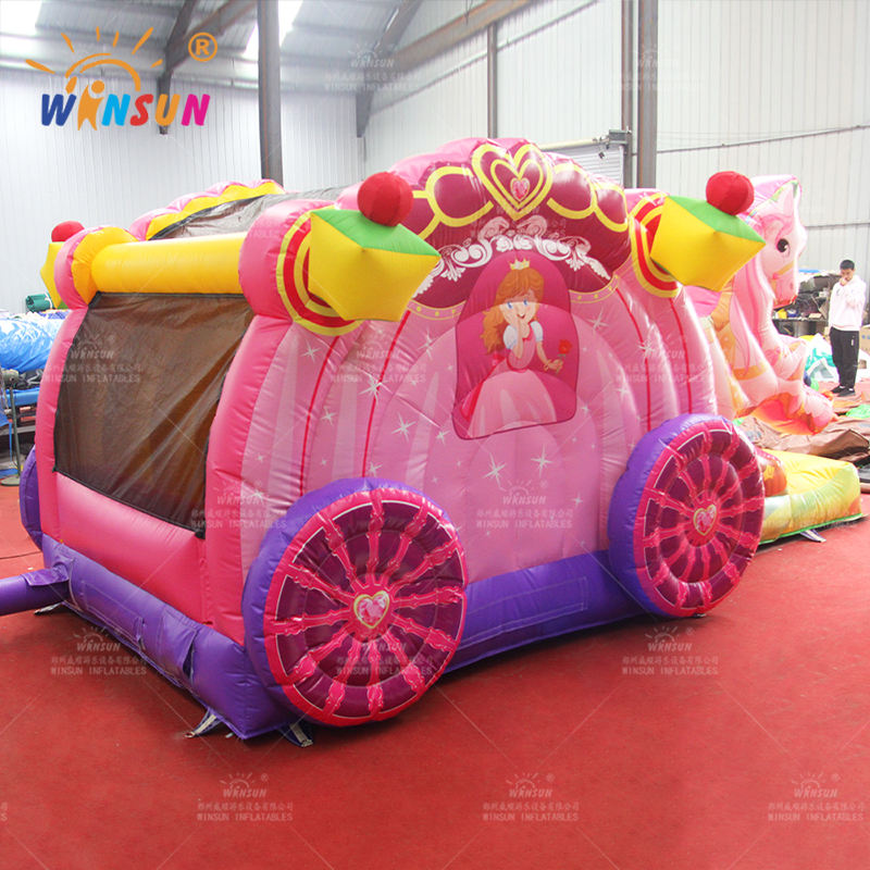 Castillo Inflable Comercial con Tobogán y Trampolín, Diseño de Carruaje de Princesa