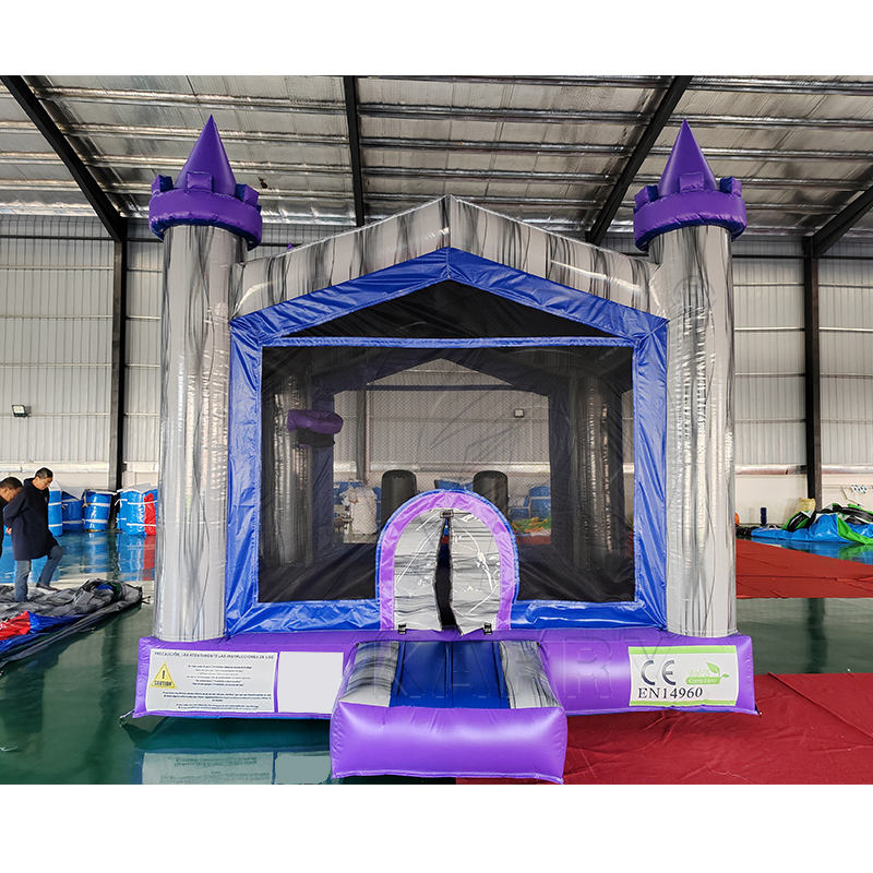 Castillo Inflable Comercial de PVC Iridiscente de 13 pies, Brincolín Inflable de Mármol Morado para Niños