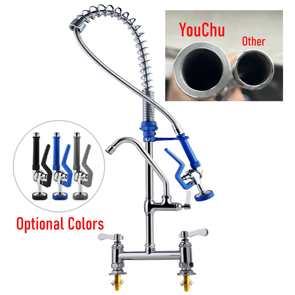 Grifo de Cocina Comercial Clásico Rústico para Agua Fría y Caliente, Montaje en Cubierta, Doble Manija, Latón Cromado, 2 Grifos para Fregadero de Cocina