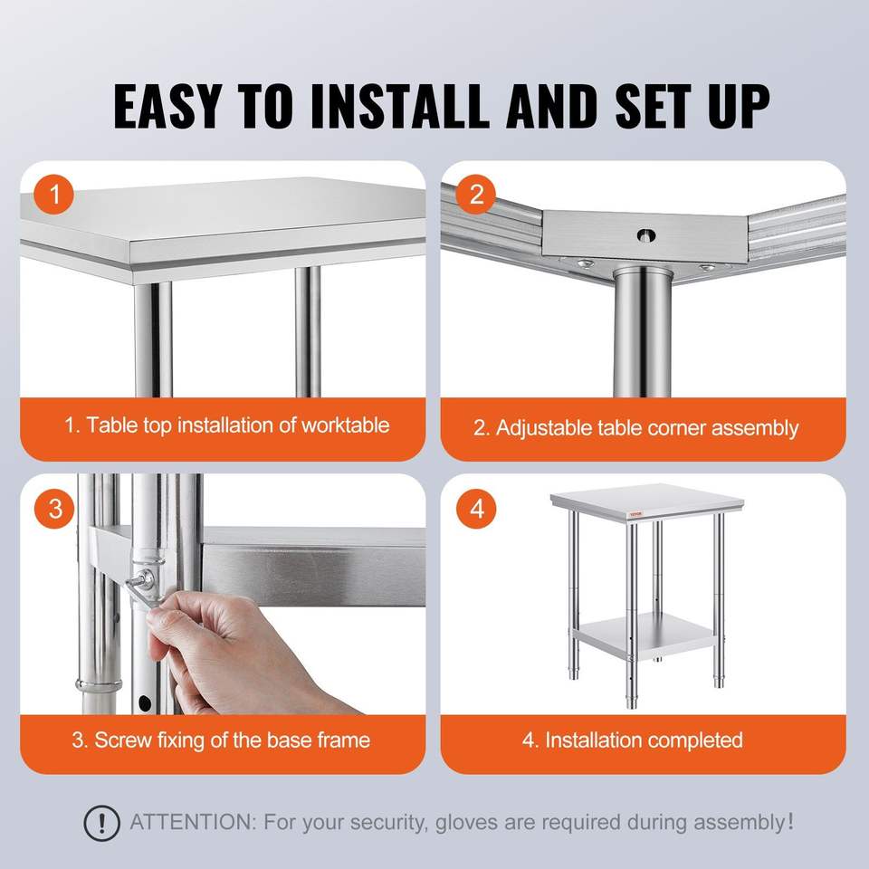Cocina comercial Trabajo Mesa de preparación de alimentos 24 "x 24" Muebles comerciales de acero inoxidable