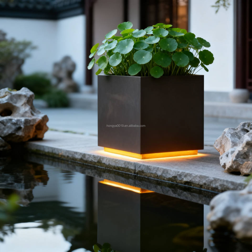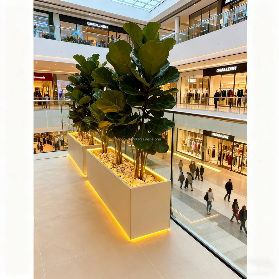 Maceta Moderna Cuadrada de Resina con Luces LED Integradas para Decoración de Centros Comerciales, Hoteles y Plazas