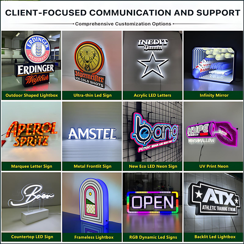 Otras líneas de productos:Letrero LED acrílico, Neón con impresión UV, Letras de bombilla, Espejo infinito