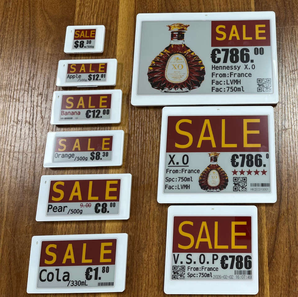 Etiquetas comerciales para estanterías de almacén, etiquetas electrónicas para estanterías con sistema ESL, pantalla grande de tinta electrónica de 10.2 pulgadas y 4 colores.