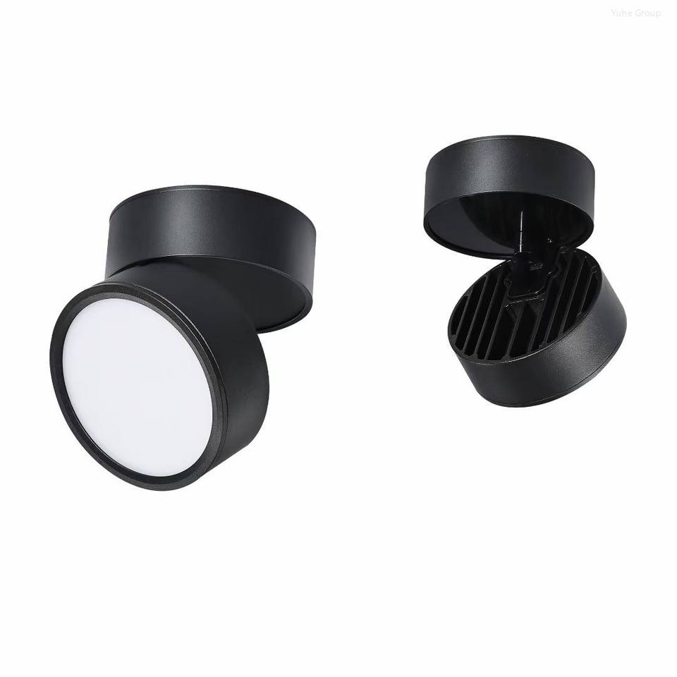 Downlight LED COB Tricolor de Alta Potencia de 9W, Moderno, Comercial, de Hierro, IP33 Antideslumbrante, 6000K Luz Diurna, Superficie Negra, Montaje Interior