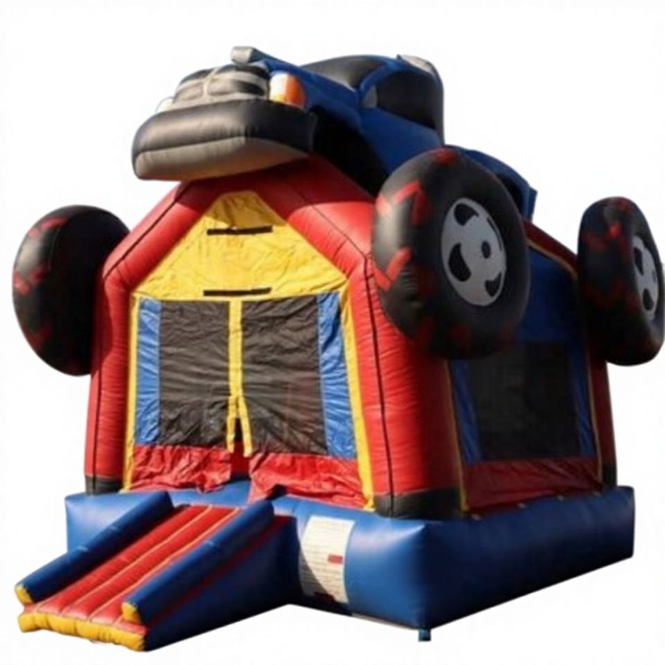 Castillo Inflable Comercial Combinado con Tobogán de Camioneta Monstruo, Casa de Brinco de PVC con Diseño de Auto de Carreras, Fácil de Instalar, Capacidad para 5-10 Personas, para Parque de Aventuras