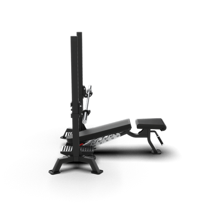Máquina comercial multifuncional para press de banca con banco ajustable para inclinación y declinación y rack
