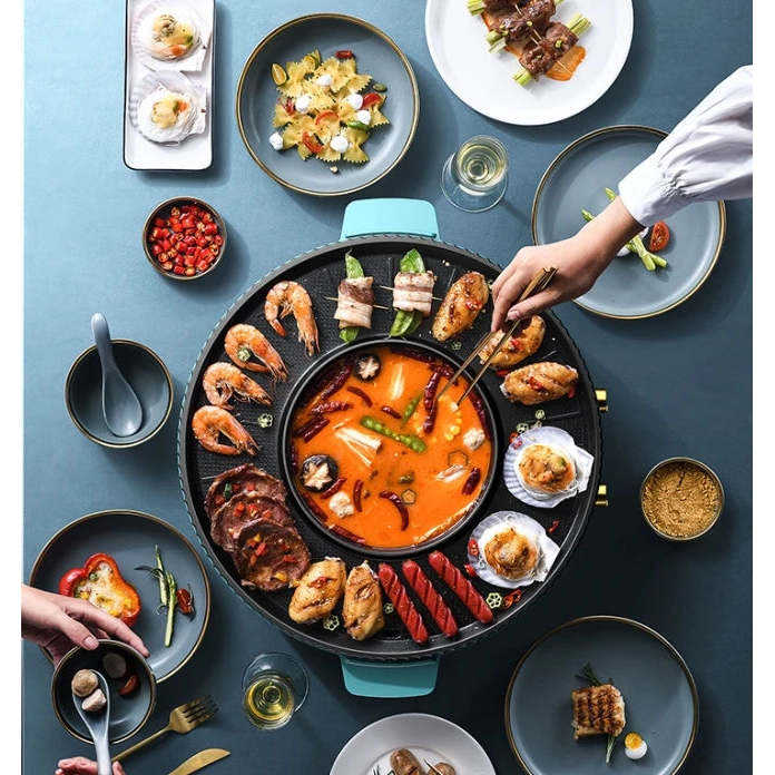 Sartén eléctrica multifunción comercial para Kebab Pizza BBQ sin humo al aire libre soporte-cama parrilla eléctrica fiestas al aire libre