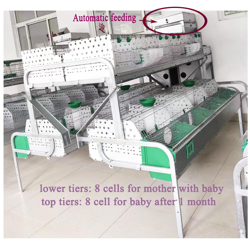 Jaulas de conejo automáticas de nuevo diseño comercial con caja nido, jaulas de conejo para cría de conejos para madres, cría de conejos