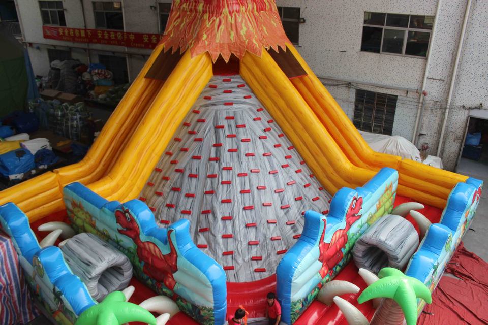 Comercial Nuevo diseño inflable Jurassic Volcano Age Inflable Playground Obstacle Course inflable boncy con tobogán