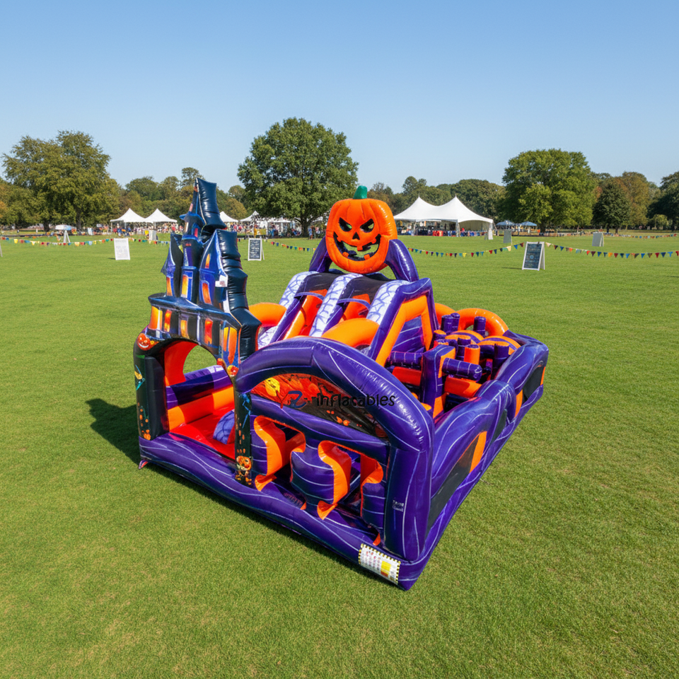 Parque de Juegos Inflable Comercial con Temática de Halloween, Circuito de Obstáculos de Aventura con Castillo Inflable