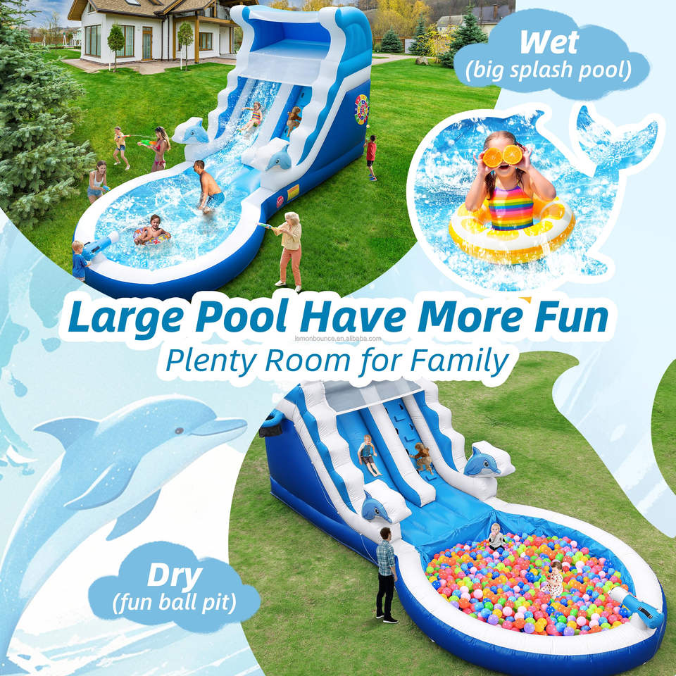Castillo Inflable Comercial para Exteriores, Tobogán Acuático Inflable con Piscina para Adultos y Niños, Diversión en PVC, Tamaño Personalizado