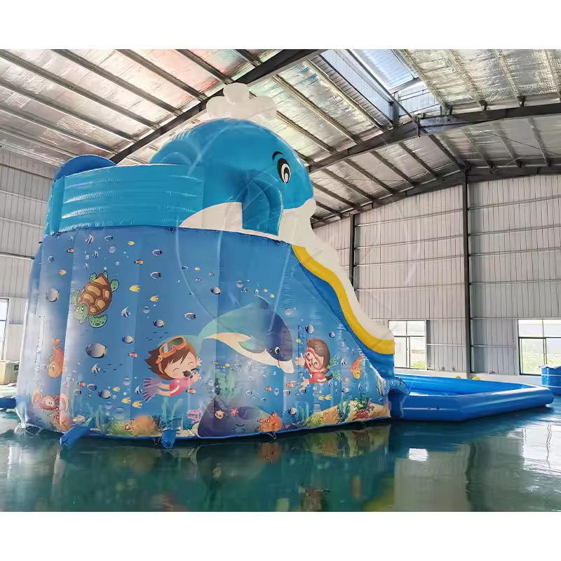 Tobogán acuático inflable de PVC comercial (azul) para adultos uso en interiores y exteriores con piscina extraíble y tobogán