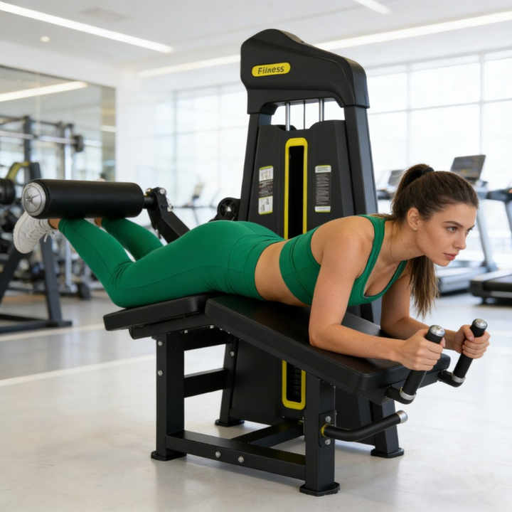 Máquina comercial de curl de piernas en posición prona Cheernin Iron Shroud con sistema de carga por pin para isquiotibiales, lista para enviar