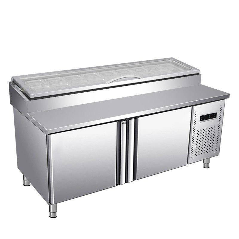 Mesa de preparación de pizza refrigerada comercial Mesa de preparación de acero inoxidable Banco de trabajo de pizza fácil de mantener y limpiar para restaurante