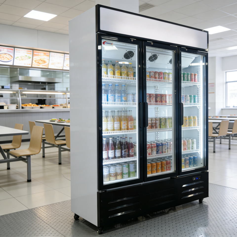Refrigerador Comercial para Restaurante, Refrigerador Vertical para Cocina, Enfriador de Aire, Exhibición Mecánica de Temperatura, 3 Puertas de Vidrio, LED