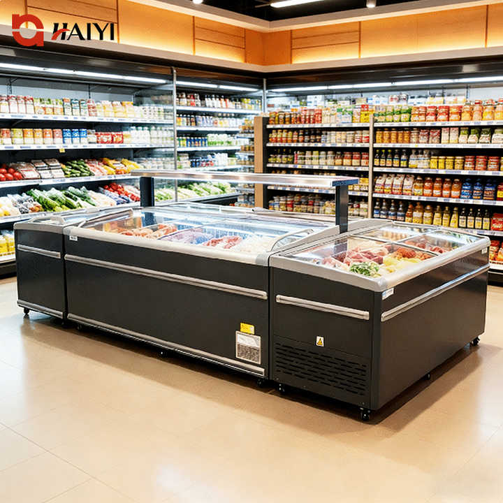 Refrigeradores Comerciales Combinados, Congelador de Exhibición Tipo Isla, Gabinete para Supermercado y Tienda de Abarrotes, Puerta Corredera de Vidrio, Electrónico