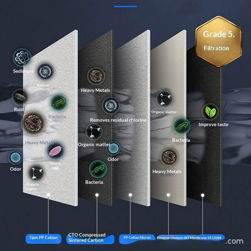 Purifica la calidad del agua, elimina la cal y las impurezas de metales pesados.Característica