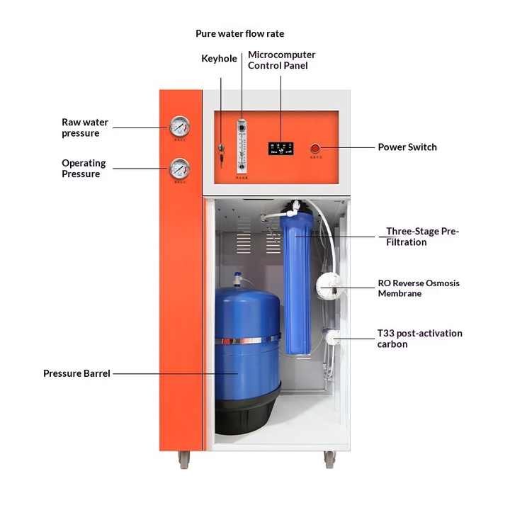 Purificador de Agua Comercial de Ósmosis Inversa con Filtración de 5 Etapas, Acero Inoxidable, Bebida Directa, Rica en Hidrógeno, Gran Flujo
