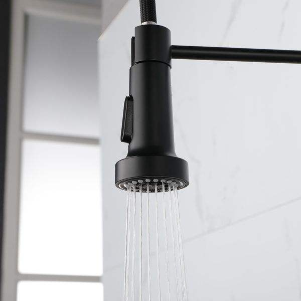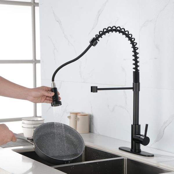 Grifo de Cocina Comercial Monomando con Rociador Extraíble, Grifo de Fregadero de Latón Sólido con Manija Única en Negro Mate
