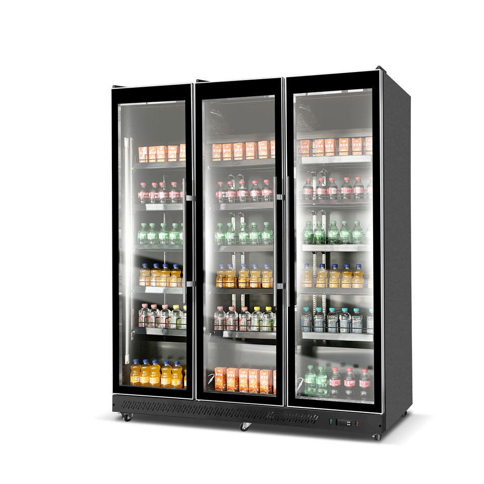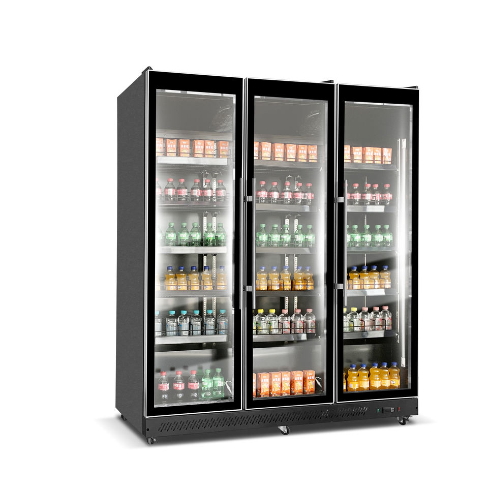 Refrigerador comercial de buena calidad con tres puertas de vidrio para bebidas