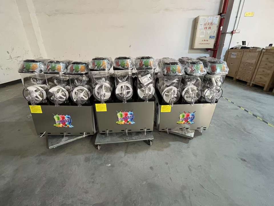 Máquina Comercial de Granizados con 3 Cubas, Incluye Tornillo y Engranaje para Producción Industrial de Bebidas Congeladas