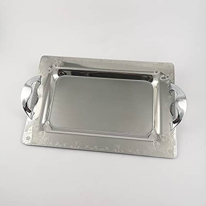 Bandeja rectangular comercial de acero inoxidable para pizza, pan, pasteles y repostería con diseño de asa antigua