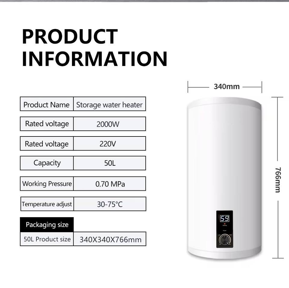 Calentador de Agua de 50L para Uso Comercial, Optimizado para Flujo de Agua Caliente, para Duchas Públicas, Calentador de Agua Eléctrico