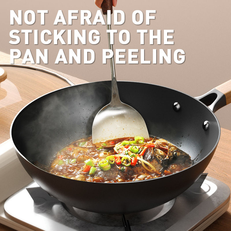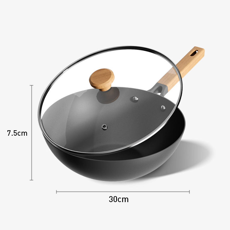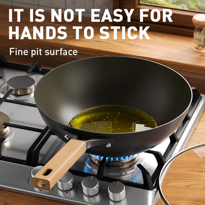 Wok Tradicional de Uso Comercial, Calidad Chef, Eficiente en el Consumo de Calor, Capacidad de 20L, Mango de Madera, Multifuncional, Acero Inoxidable