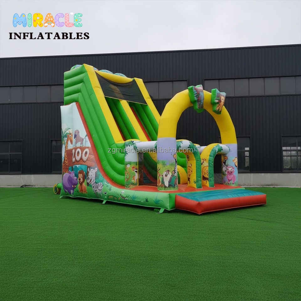 Tobogán Acuático Inflable Comercial con Diseño de Animales para Alquiler en Fiestas