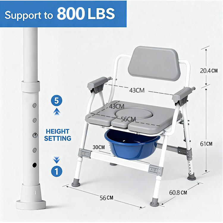 Silla de Comodidad de Aleación de Aluminio, Altura Ajustable, Respaldo Plegable con Asiento Abatible para Personas Mayores y Usuarios con Discapacidad