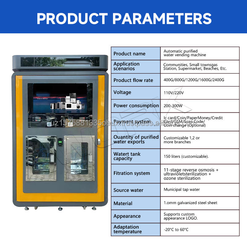 Máquina Expendedora de Agua Personalizada para la Comunidad, con Doble Salida, Servicio 24/7, 800 GPD, Acero Galvanizado Antioxidante, Pago Múltiple UVend
