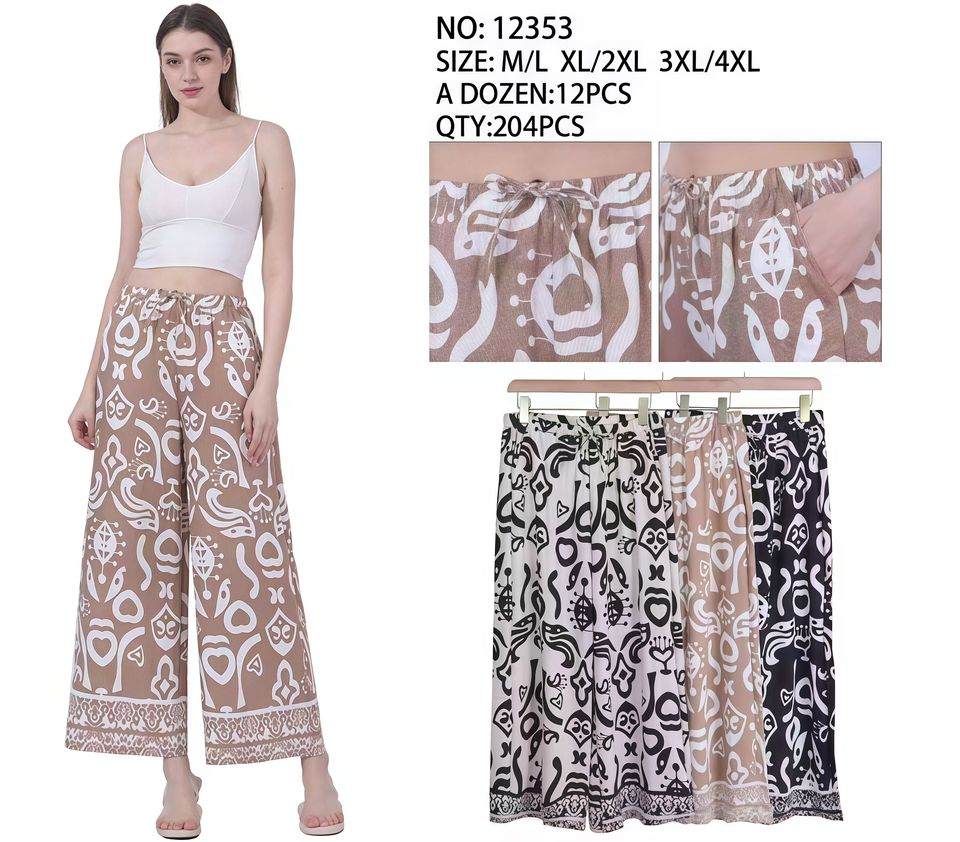 Comodo7 ODM pantalones elásticos de cintura alta con cordón para mujer de talla grande 3D pantalones sueltos informales de pierna ancha bolsillos transpirables de colores