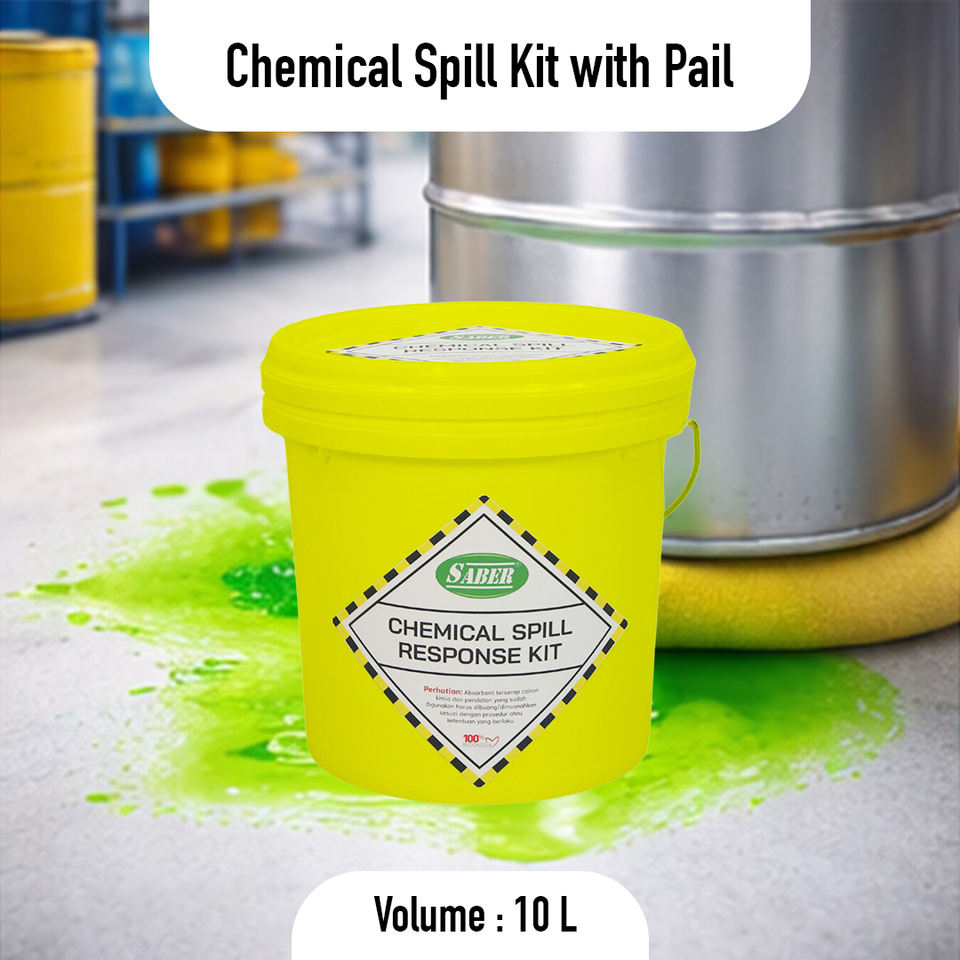 Kit Compacto de 10 Litros para Derrames Químicos con Cubeta para Uso en Fábricas, Talleres, Laboratorios, Almacenes, Seguridad y Emergencias
