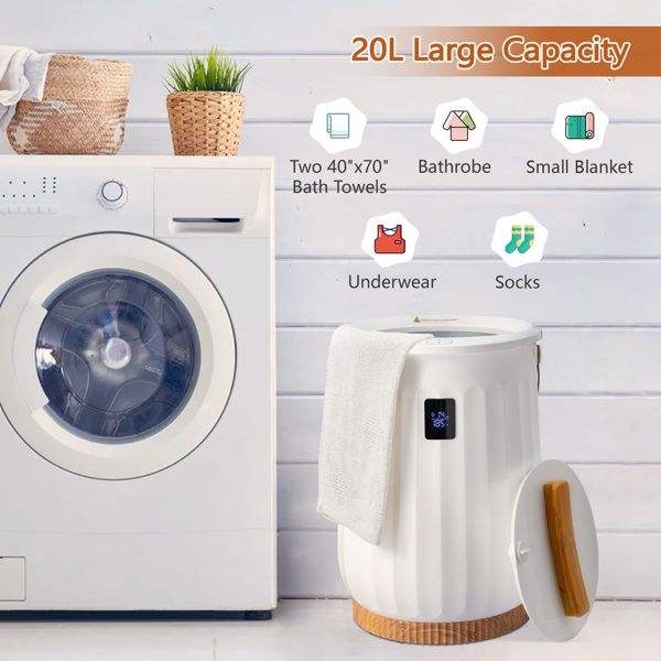 Secadora de Ropa Compacta de 20L con Pantalla LCD, Borde Blanco y Amarillo, Rango de Potencia de 110.00-400.00 Vatios, Temperatura Máxima de 130°C, Asa
