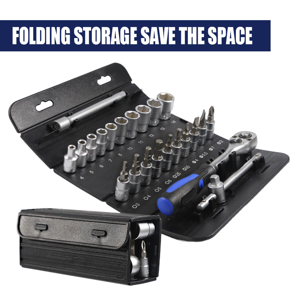 Juego de Puntas de Acero Cr-V Compacto de 23 Piezas, 1/4 DR., con Estuche para Llave de Trinquete, OEM Disponible, Multiusos, Hecho en Taiwán, LEMATEC