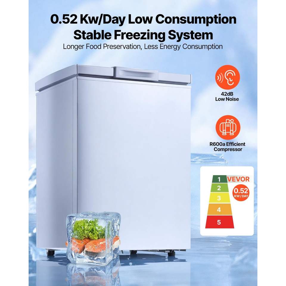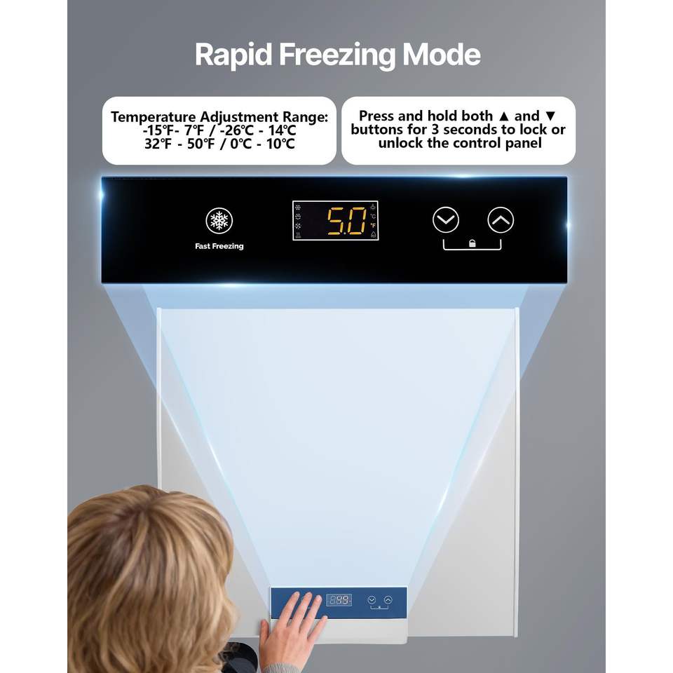 Congelador Compacto de 3.3 Pies Cúbicos con 2 Cestas Extraíbles Ajustables, Congelador Vertical con Puerta Superior Abatible