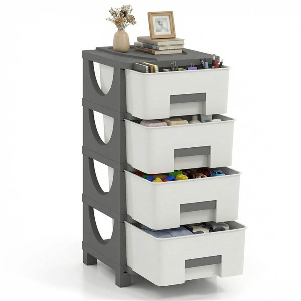 Organizador Vertical Compacto de 4 Cajones, Gabinete de Almacenamiento de Plástico para Dormitorio, Baño u Oficina