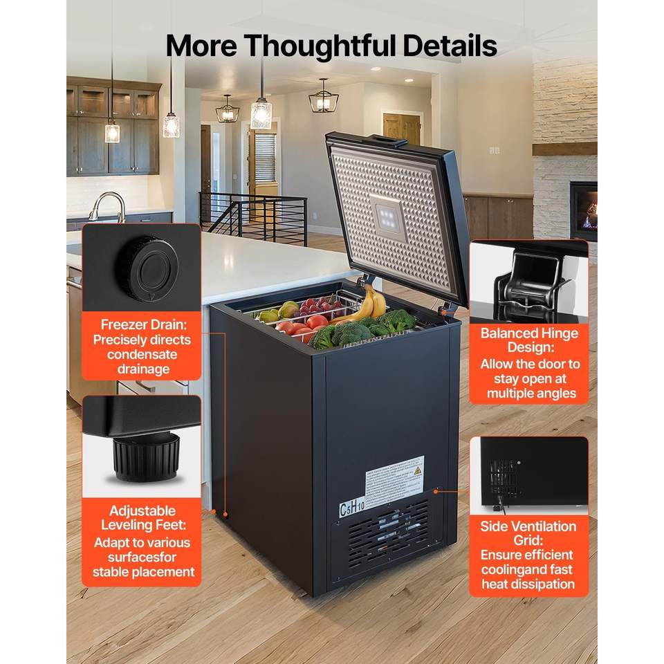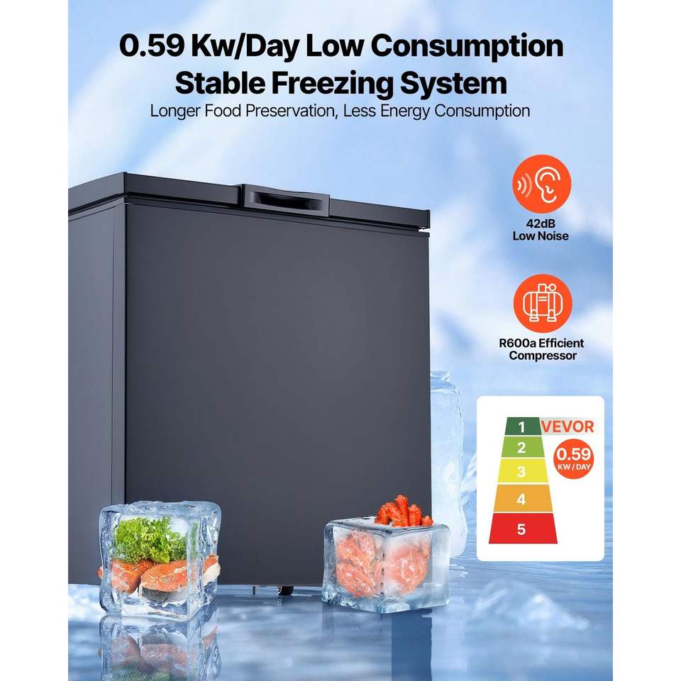 Congelador Compacto de 5 Pies Cúbicos con Puerta Superior Abatible, Cestas Ajustables y Extraíbles