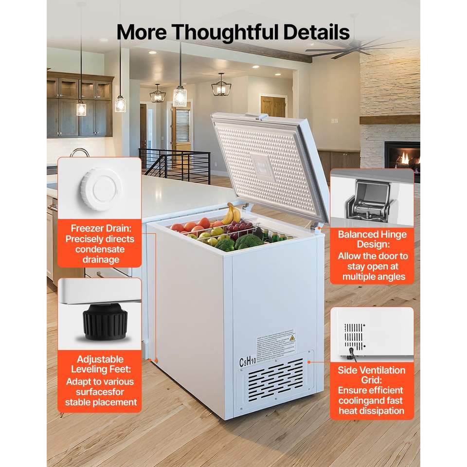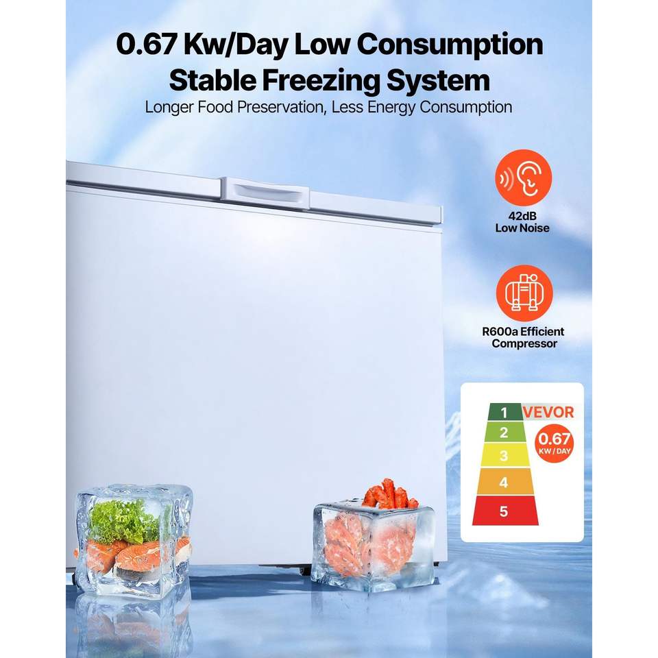 Congelador Compacto de 6.7 Pies Cúbicos con 2 Cestas Extraíbles Ajustables, Congelador Vertical con Puerta Superior Abatible