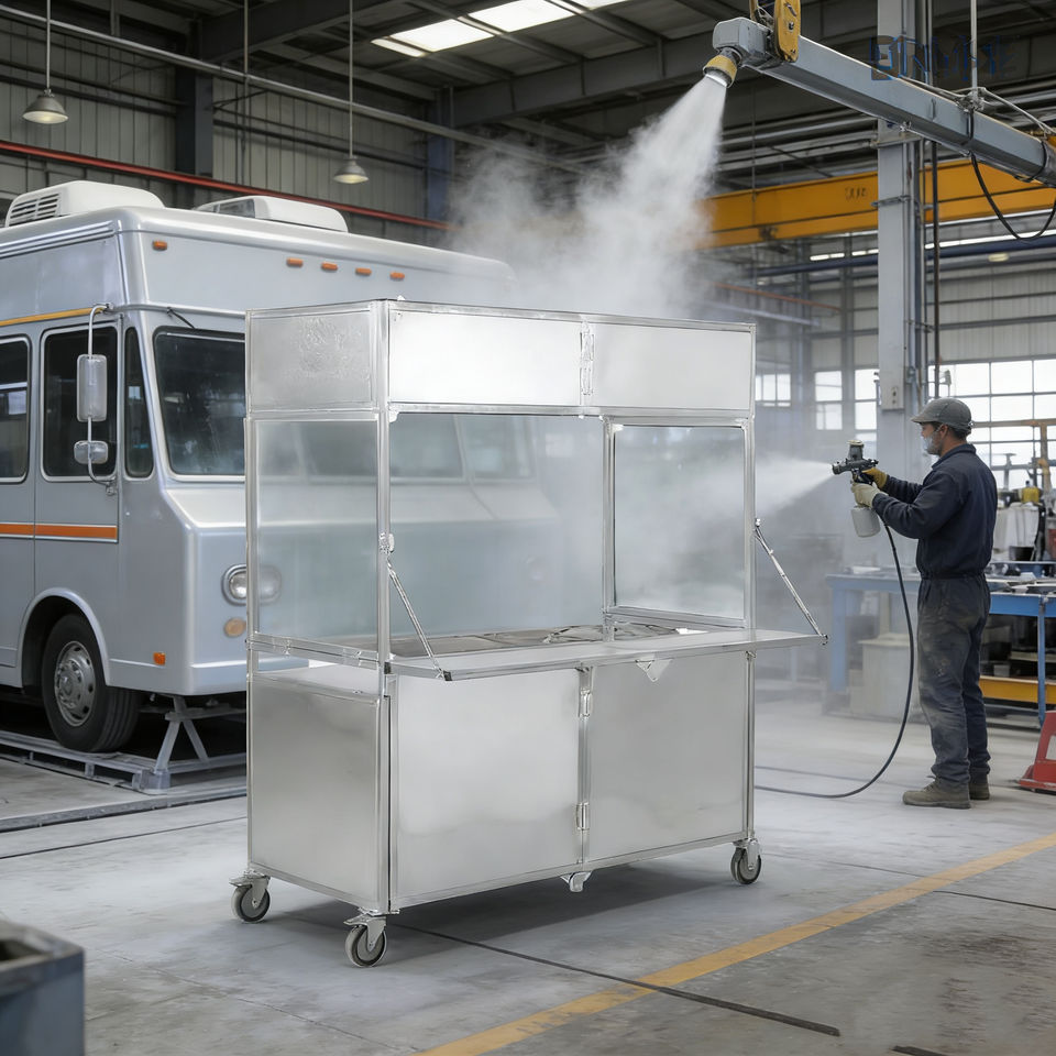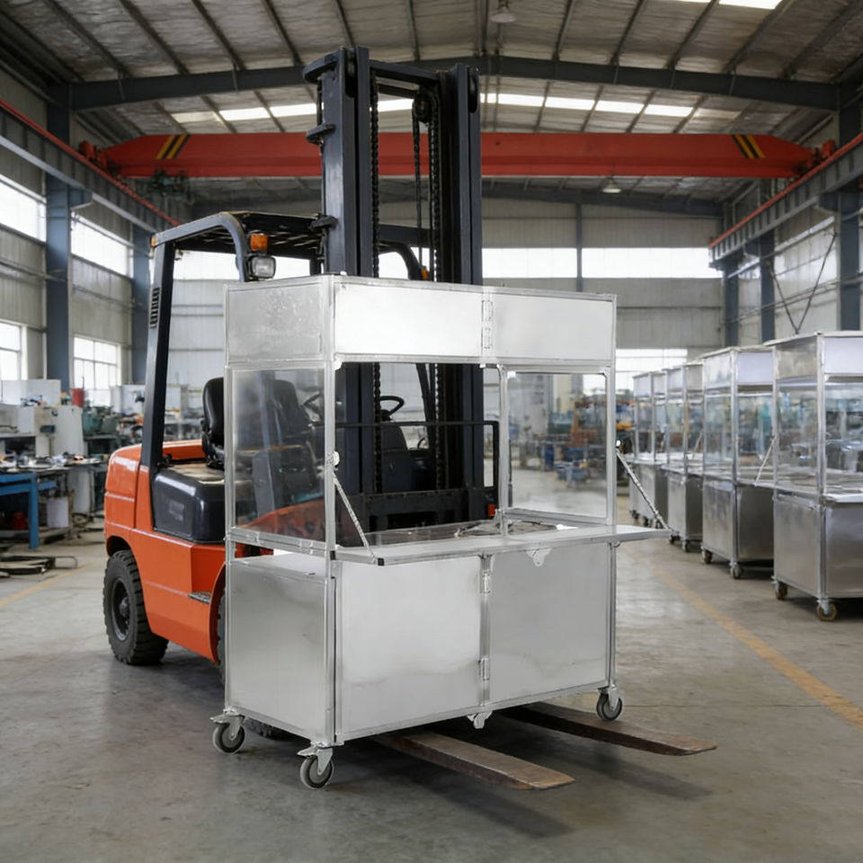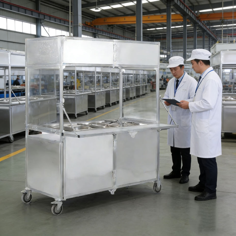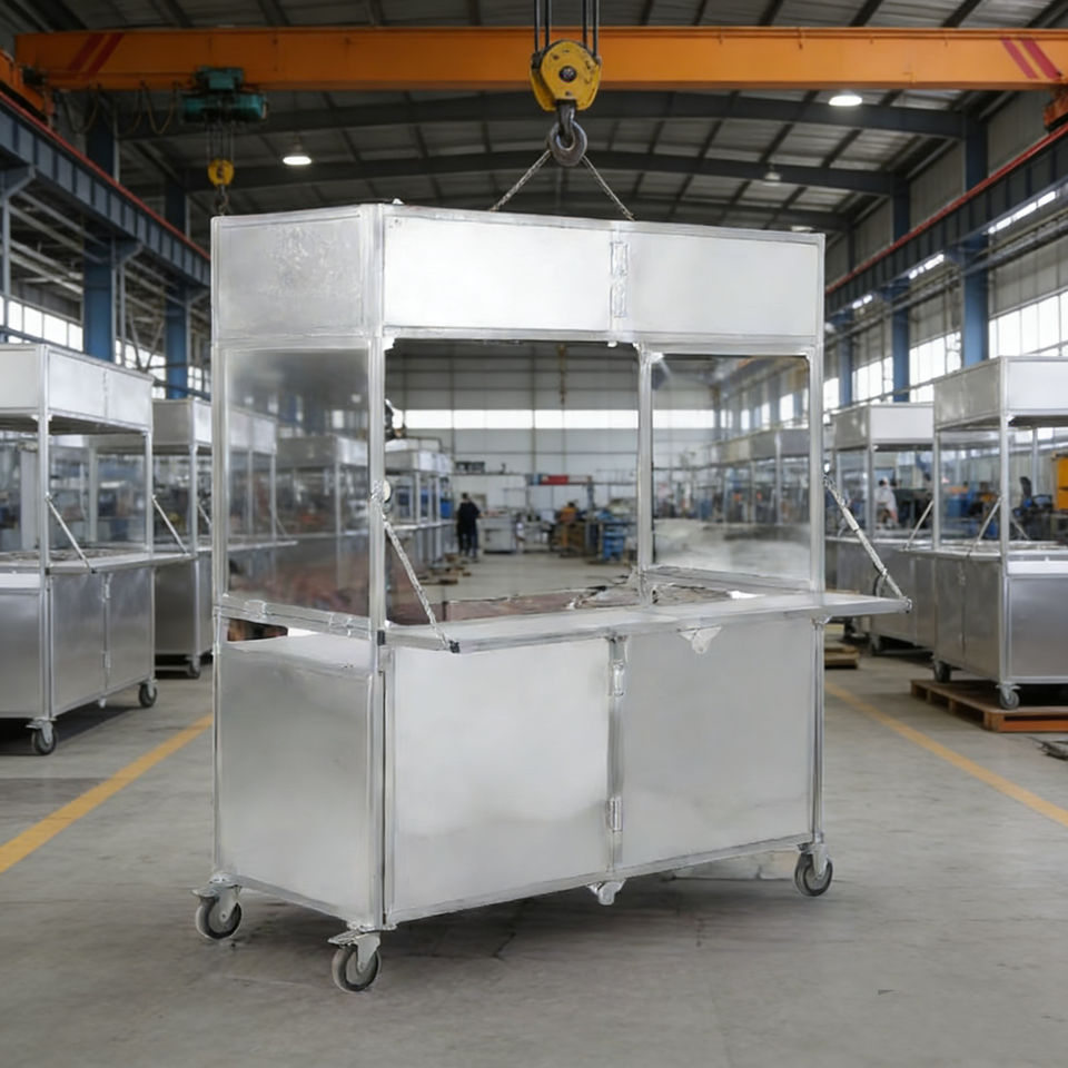 Carrito de Remolque Plegable Compacto de Acero Inoxidable con 4 Ruedas, Resistente a la Oxidación, para Venta de Café, Helados, Hot Dogs, Dulces, Bocadillos y Papas Fritas